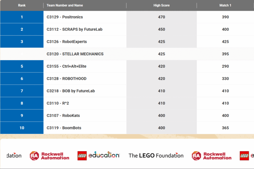 Οι STELLAR MECHANICS κατέκτησαν την 4η θέση στο Robot Game με 425 πόντους, κέρδισαν το βραβείο Robot Design και εξασφάλισαν την πρόκριση για τον Μεγάλο Τελικό. Πολύ καλή ήταν και η εμφάνιση των ELECTRO KINGS, που κατέλαβαν τη 15η θέση στο Robot Game με 360 πόντους, κέρδισαν το βραβείο Breakthrough Award και επίσης προκρίθηκαν στον Μεγάλο Τελικό.
