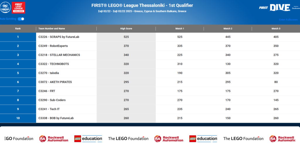 Αποτελέσματα Περιφερειακού Τελικού FLL SUBMERGED