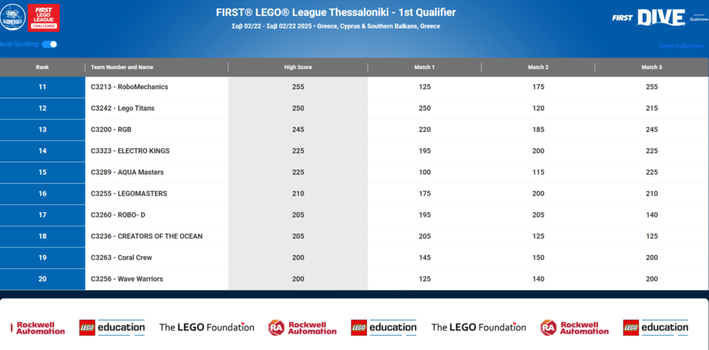 Με επιτυχία ολοκληρώθηκε ο Περιφερειακός τελικός του FIRST® LEGO® League στην Θεσσαλονίκη. Πήραν μέρος συνολικά 31 ομάδες και οι πρώτες 11 πρόκριθηκαν στον τελικό.